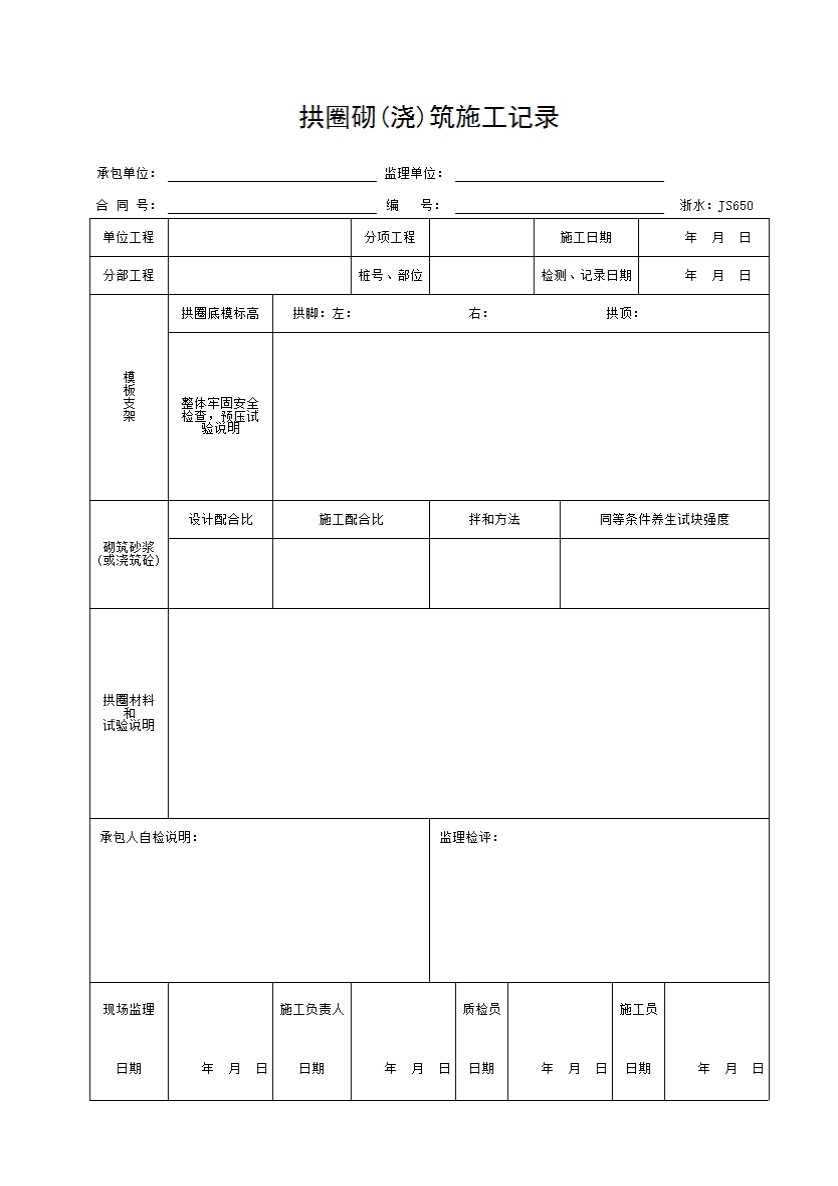 表格名称:050 拱圈砌(浇)筑施工记录