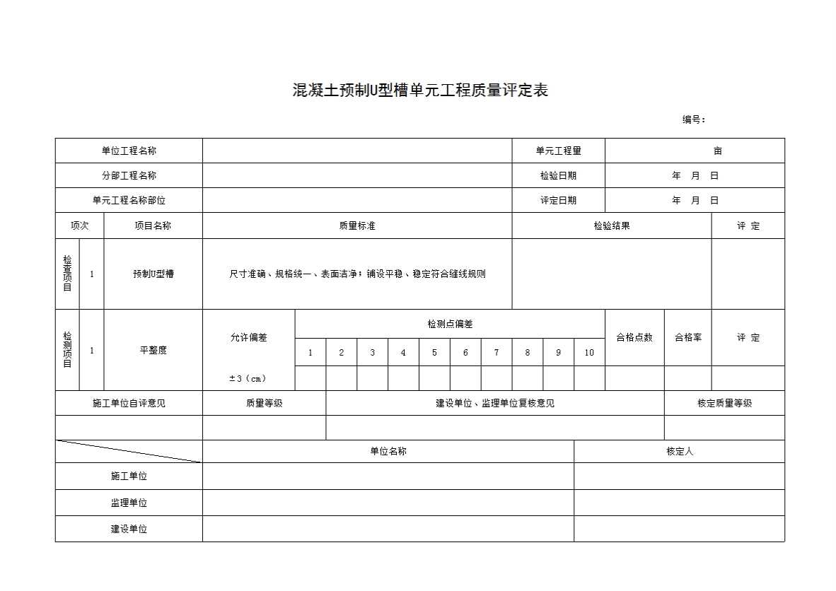 表格名称:混凝土预制U型槽单元工程质量评定表