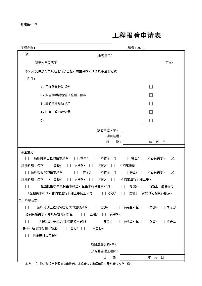 A5-3 ______工程报验申请表