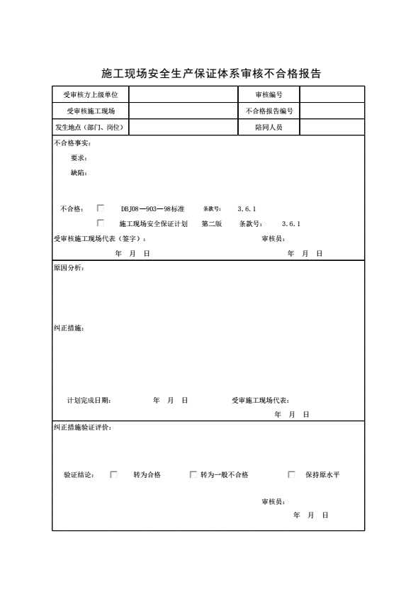表格名称:施工现场安全生产保证体系审核不合格报告14