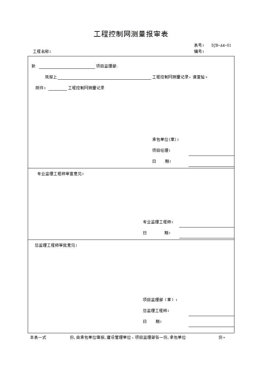 表格名称:DJB-A4-01 工程控制网测量报审表