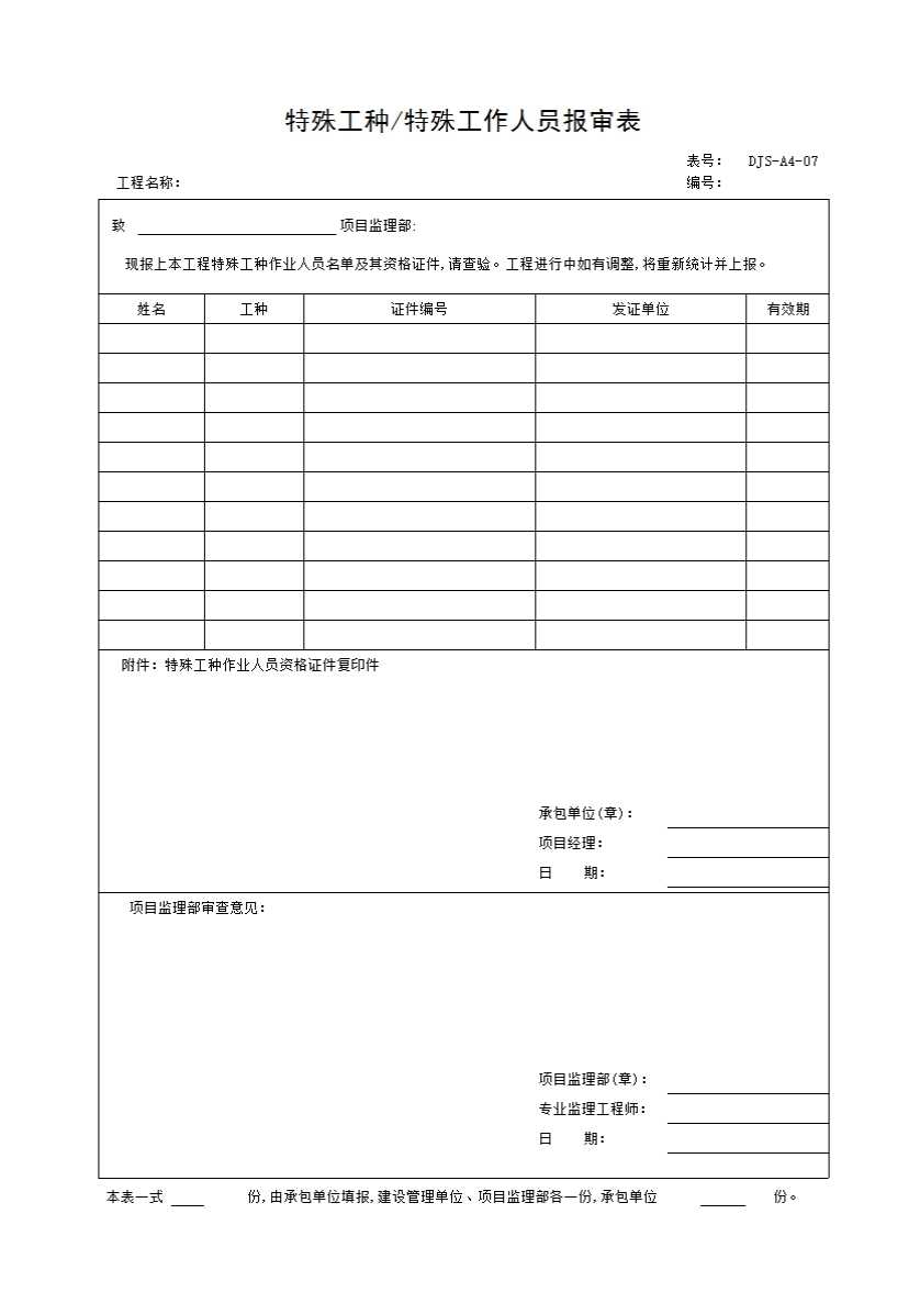 DJS-A4-07 特殊工种特殊工作人员报审表