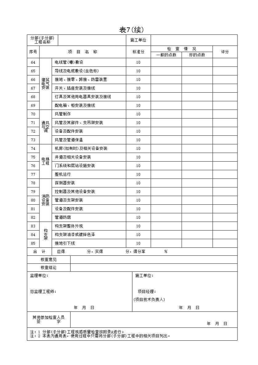 表格名称:表7 分部(子分部)工程观感质量检查记录