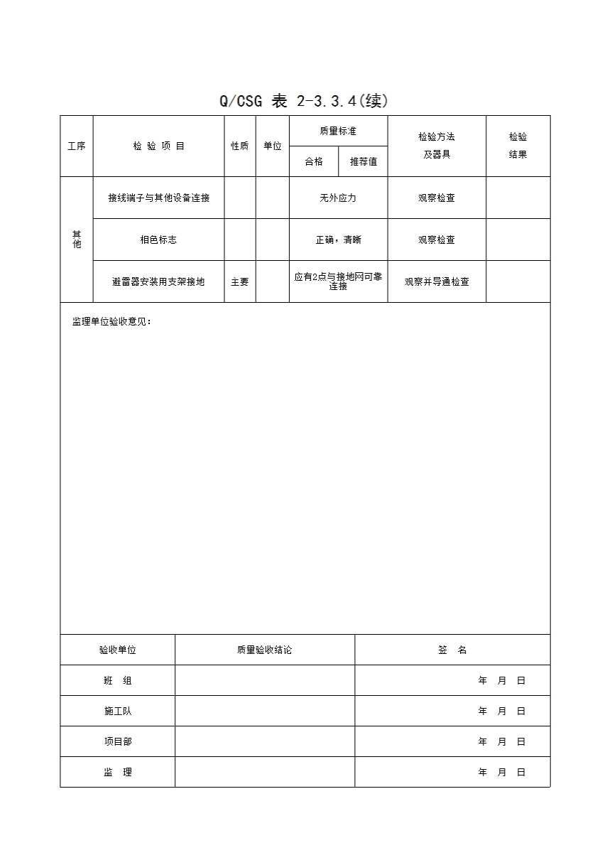 QCSG 表 2-3.3.4 避雷器安装 分项工程质量验收记录表