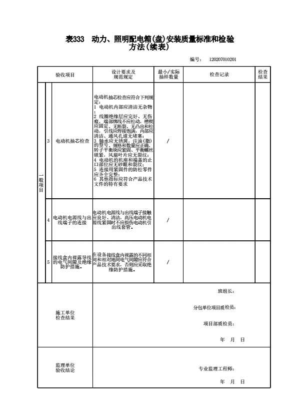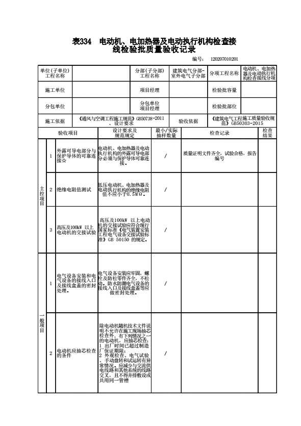 表格名称:120207010201 电动机、电加热器及电动执行机构检查接线检验批质量验收记录