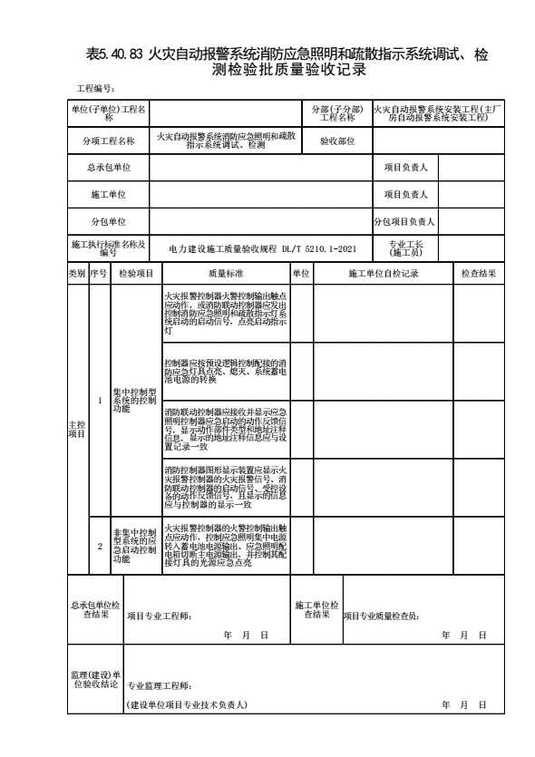 表格名称:表5.40.83 火灾自动报警系统消防应急照明和疏散指示系统调试、检测检验批质结果验收记录