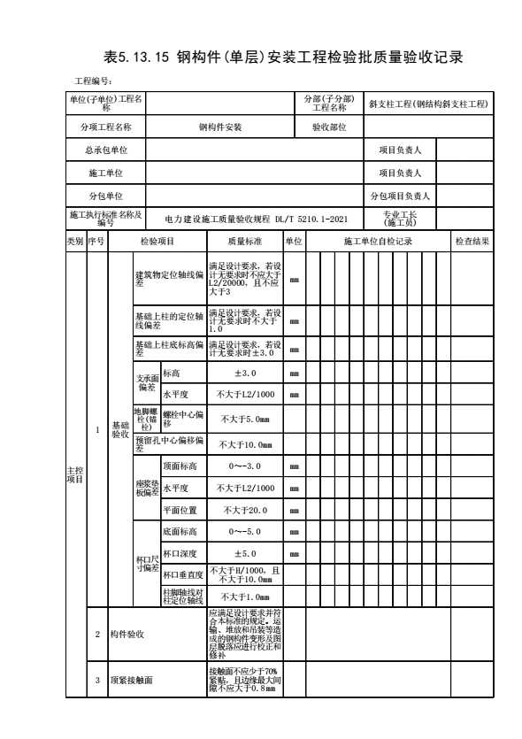 表格名称:[符合表5.13.15]表10.4.7单层钢结构安装工程检验批质量验收记录