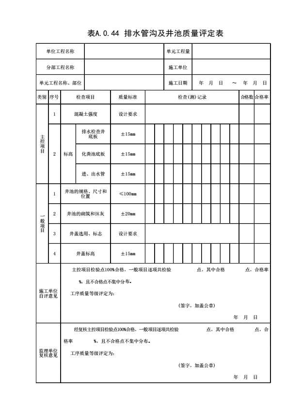 表格名称:表A.0.44 排水管沟及井池质量评定表