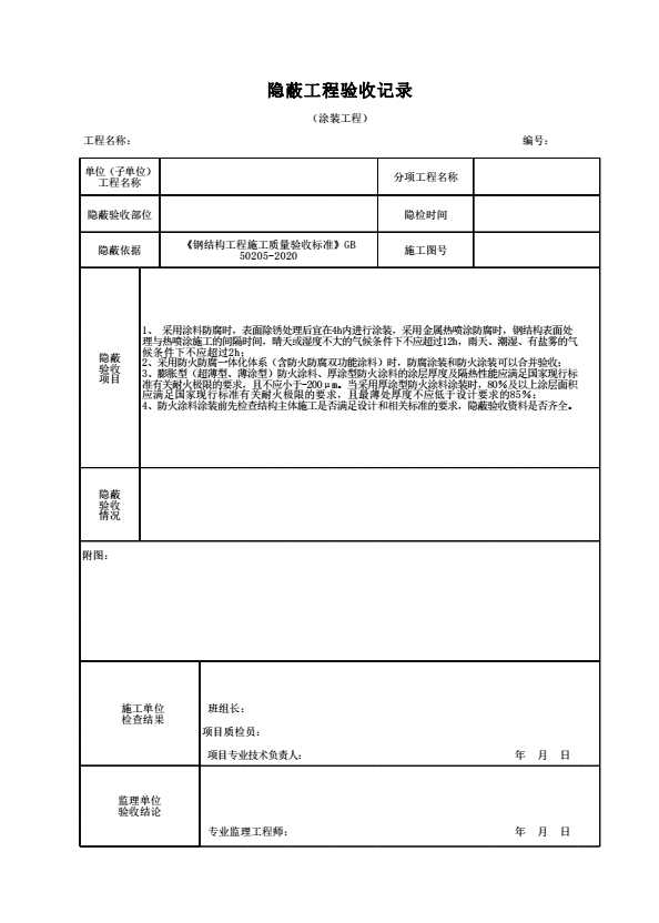 表格名称:隐蔽工程验收记录(涂装工程)