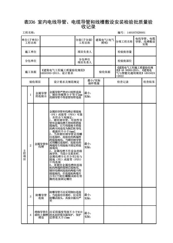 表格名称:140107020601 室内电线导管、电缆导管和线槽敷设安装检验批质量验收记录