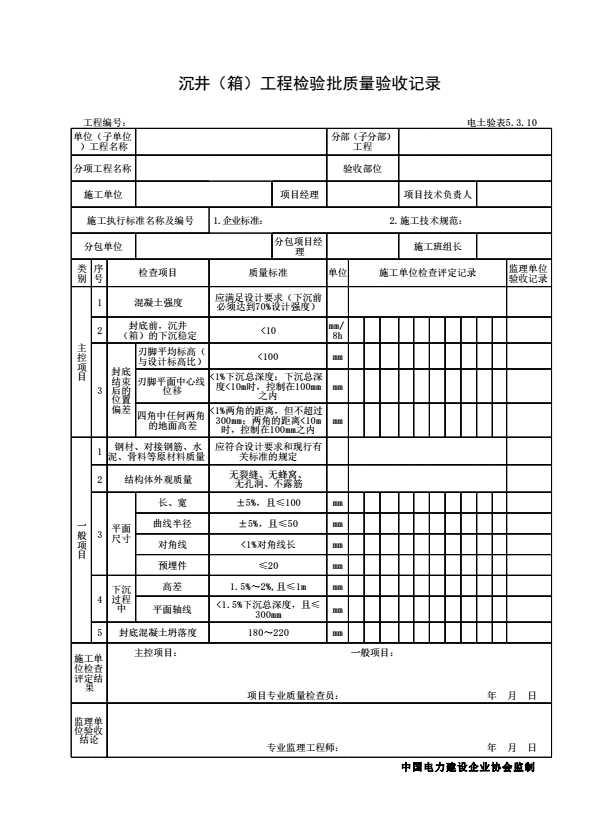 表格名称:电土验表5.3.10 沉井(箱)工程检验批质量验收记录