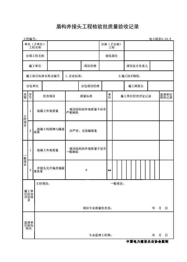 表格名称:电土验表5.34.8 盾构井接头工程检验批质量验收记录
