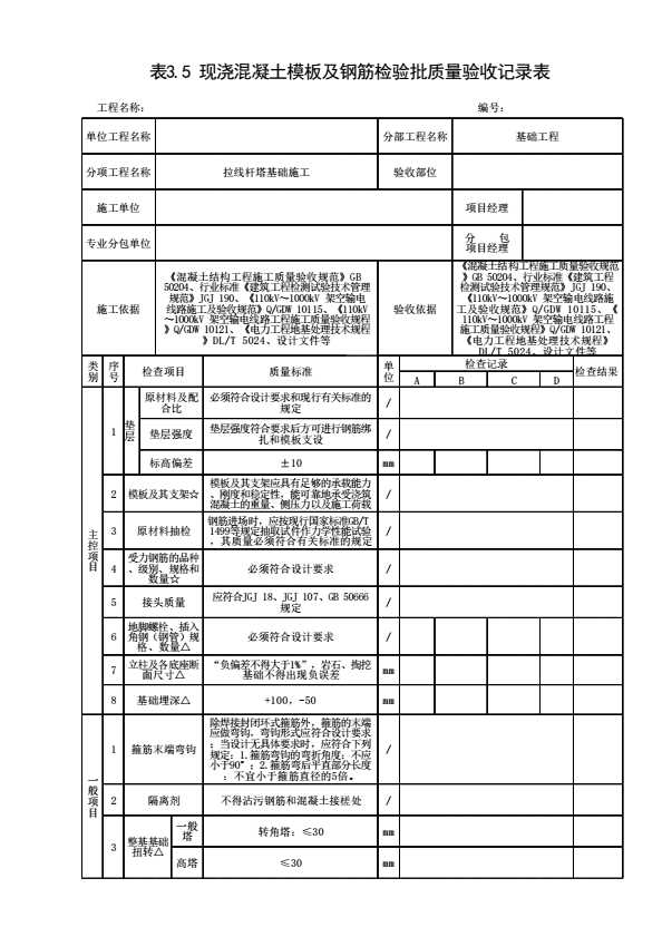 表格名称:表3.5 现浇混凝土模板及钢筋检验批质量验收记录表