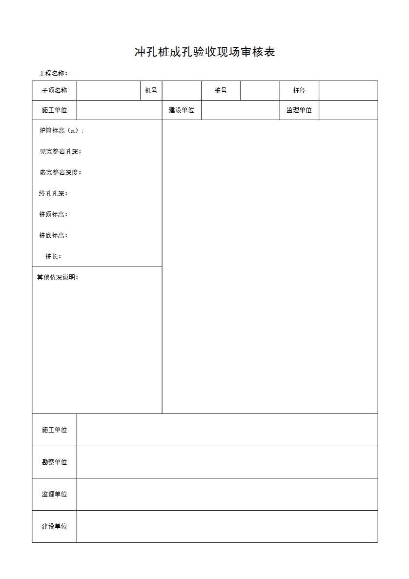12 冲孔桩成孔验收现场审核表