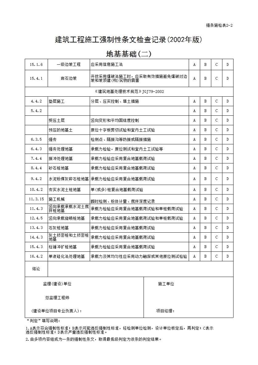 表格名称:强条施检表2-2 建筑工程施工强制性条文检查记录地(基基础二)