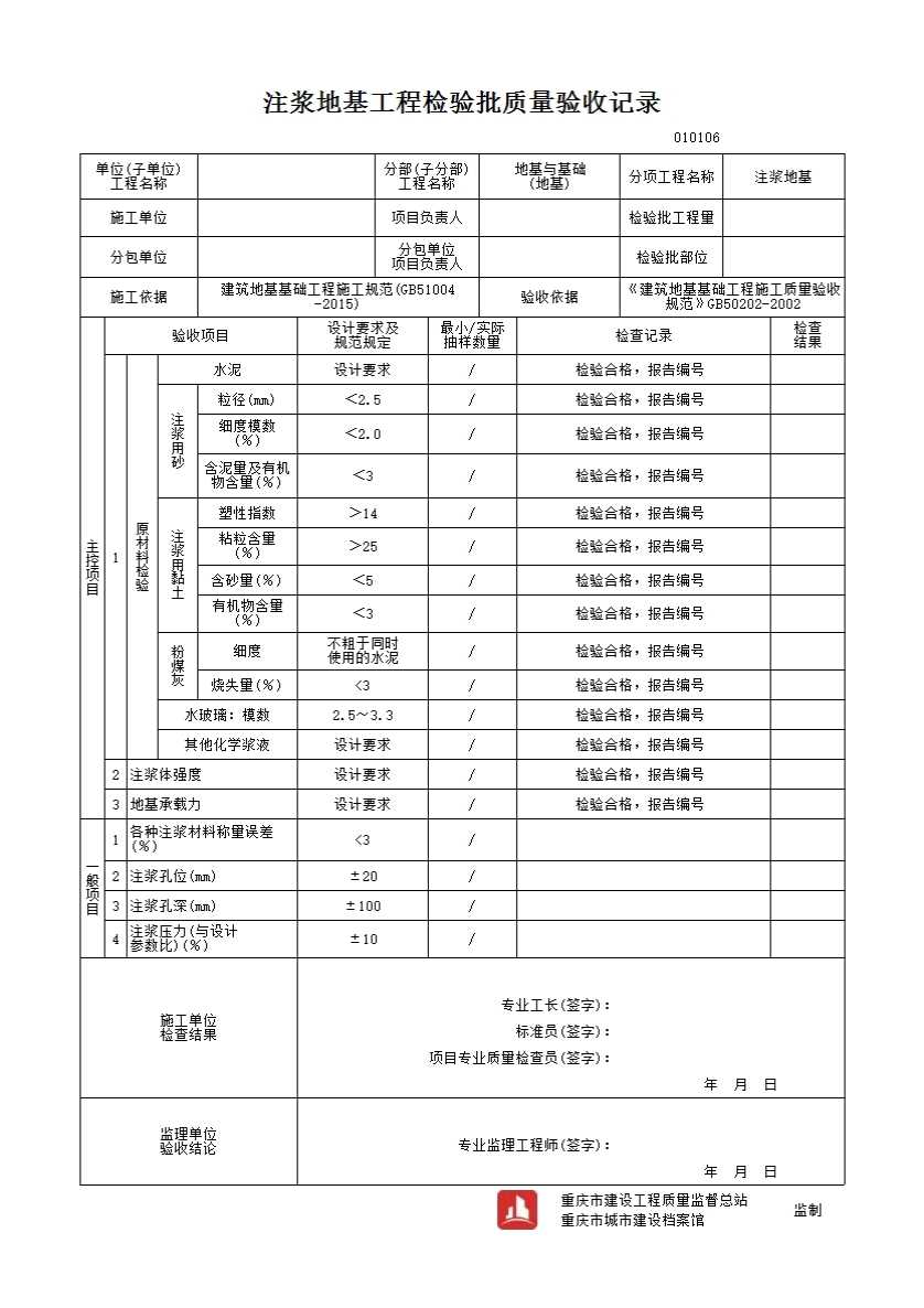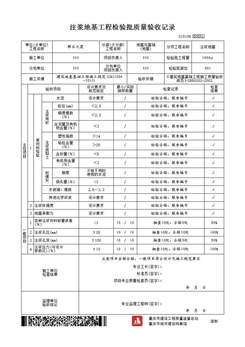 010106 注浆地基工程检验批质量验收记录