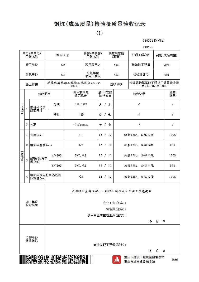 5.5.1 施工前应检查进人现场的成品钢桩,成品桩的质量标准应符合本规范表5.5.4-1的规定。