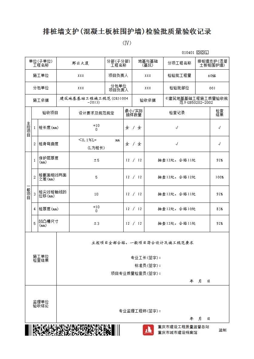 010401 排桩墙支护(混凝土板桩围护墙)检验批质量验收记录(Ⅳ)