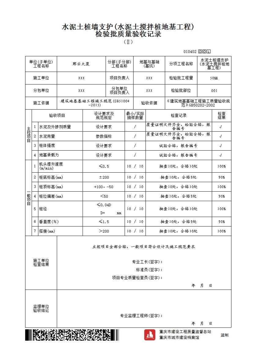 010402 水泥土桩墙支护(水泥土搅拌桩地基工程)检验批质量验收记录(Ⅱ)