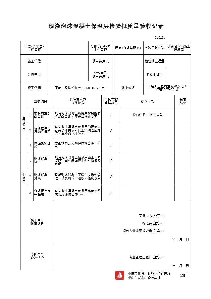 040204 现浇泡沫混凝土保温层检验批质量验收记录