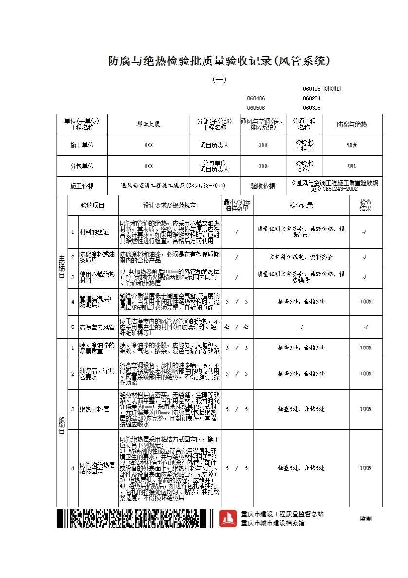 060105 防腐与绝热检验批质量验收记录(风管系统)(一)、(二)