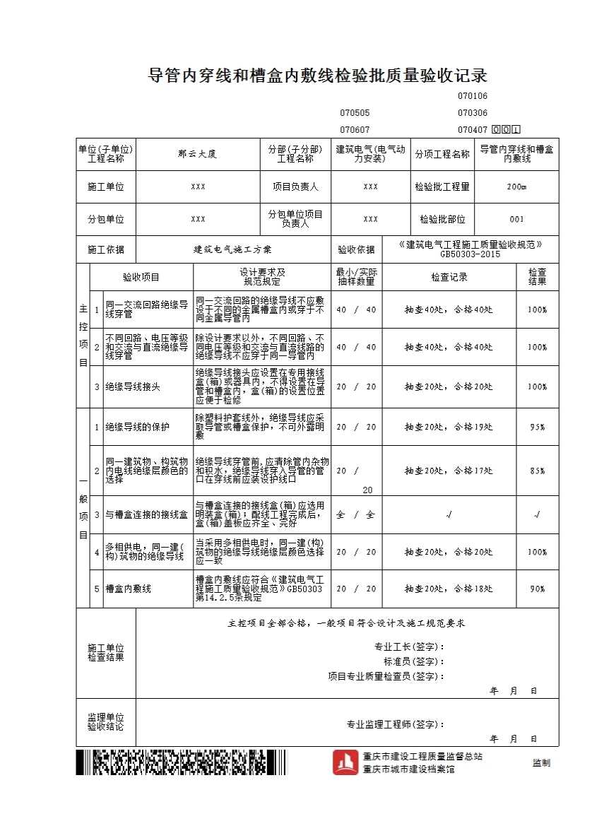 070407 导管内穿线和槽盒内敷线检验批质量验收记录