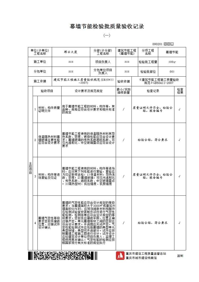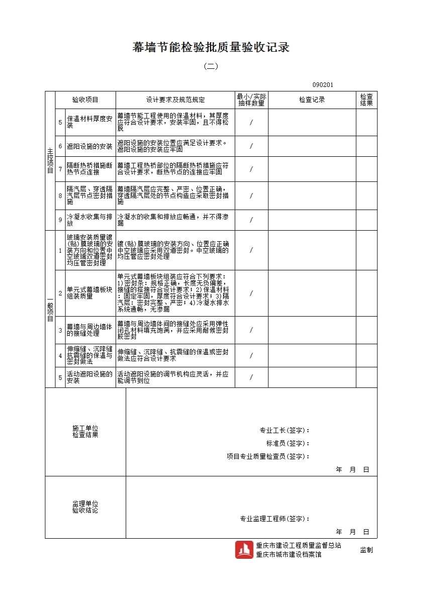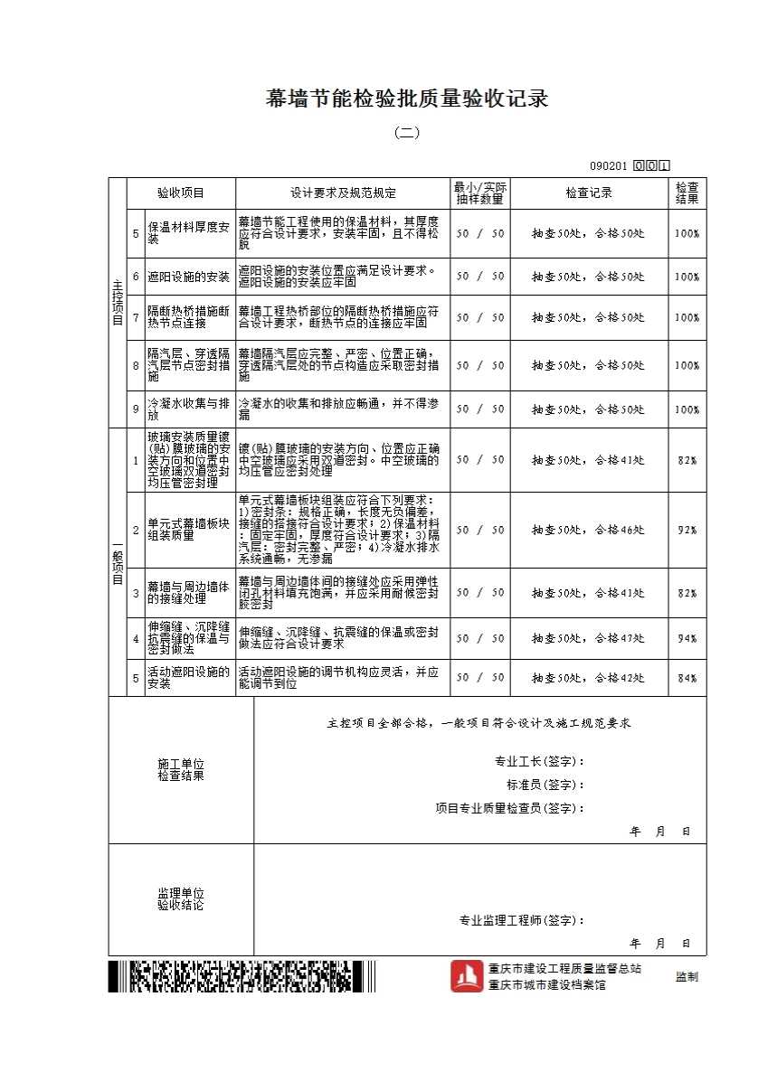 090201 幕墙节能检验批质量验收记录(一)、(二)