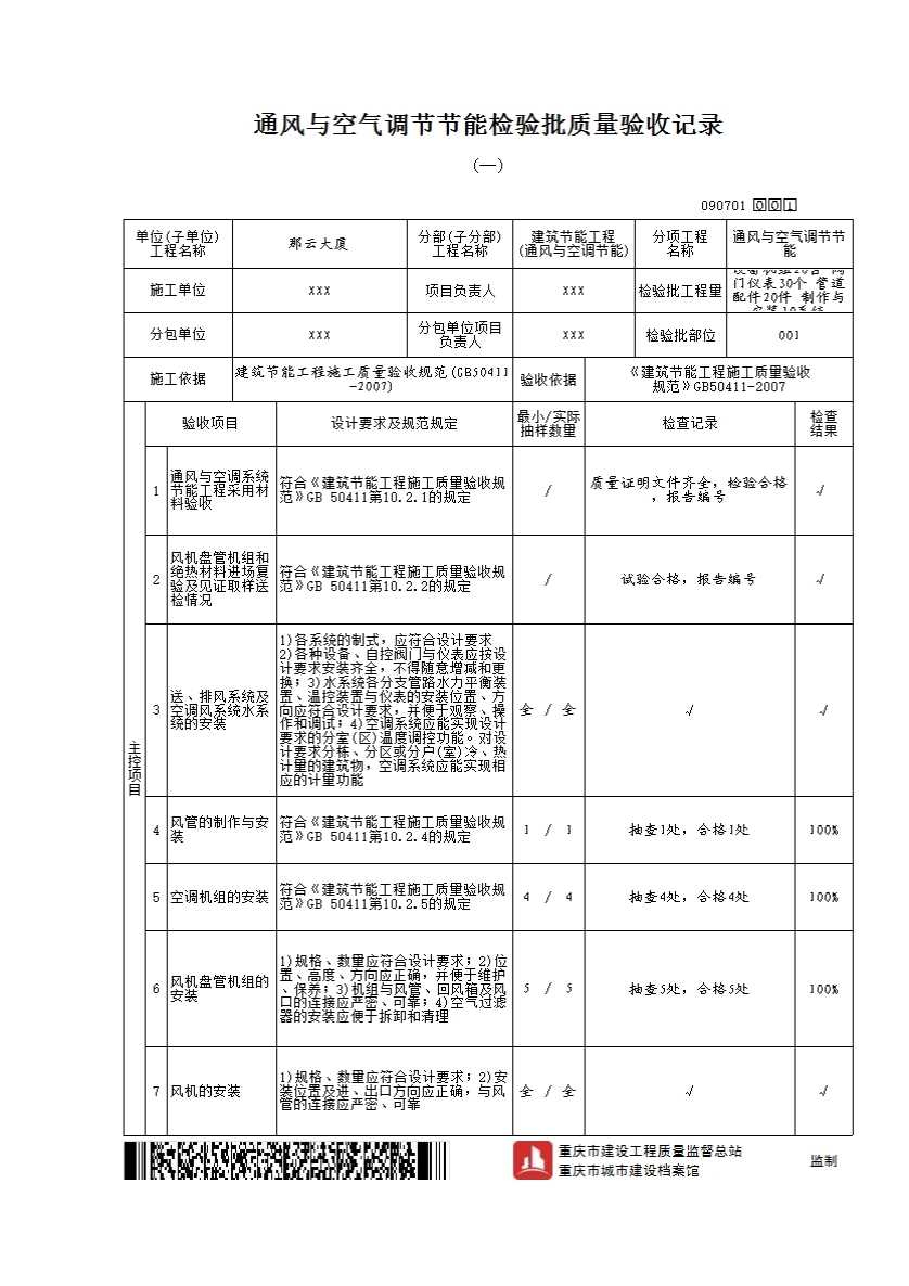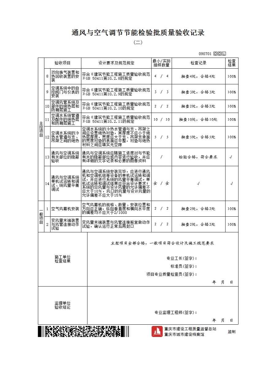 090701 通风与空气调节节能检验批质量验收记录(一)、(二)