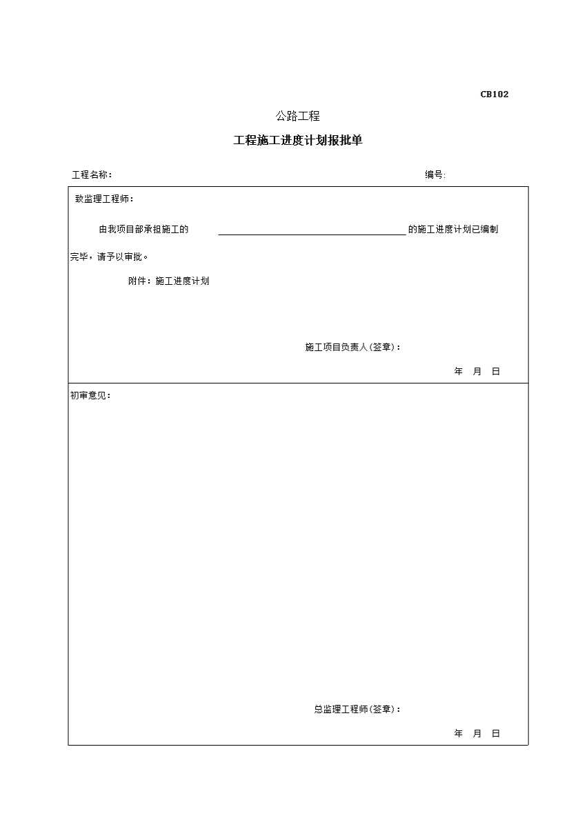 CB102 工程施工进度计划报批单
