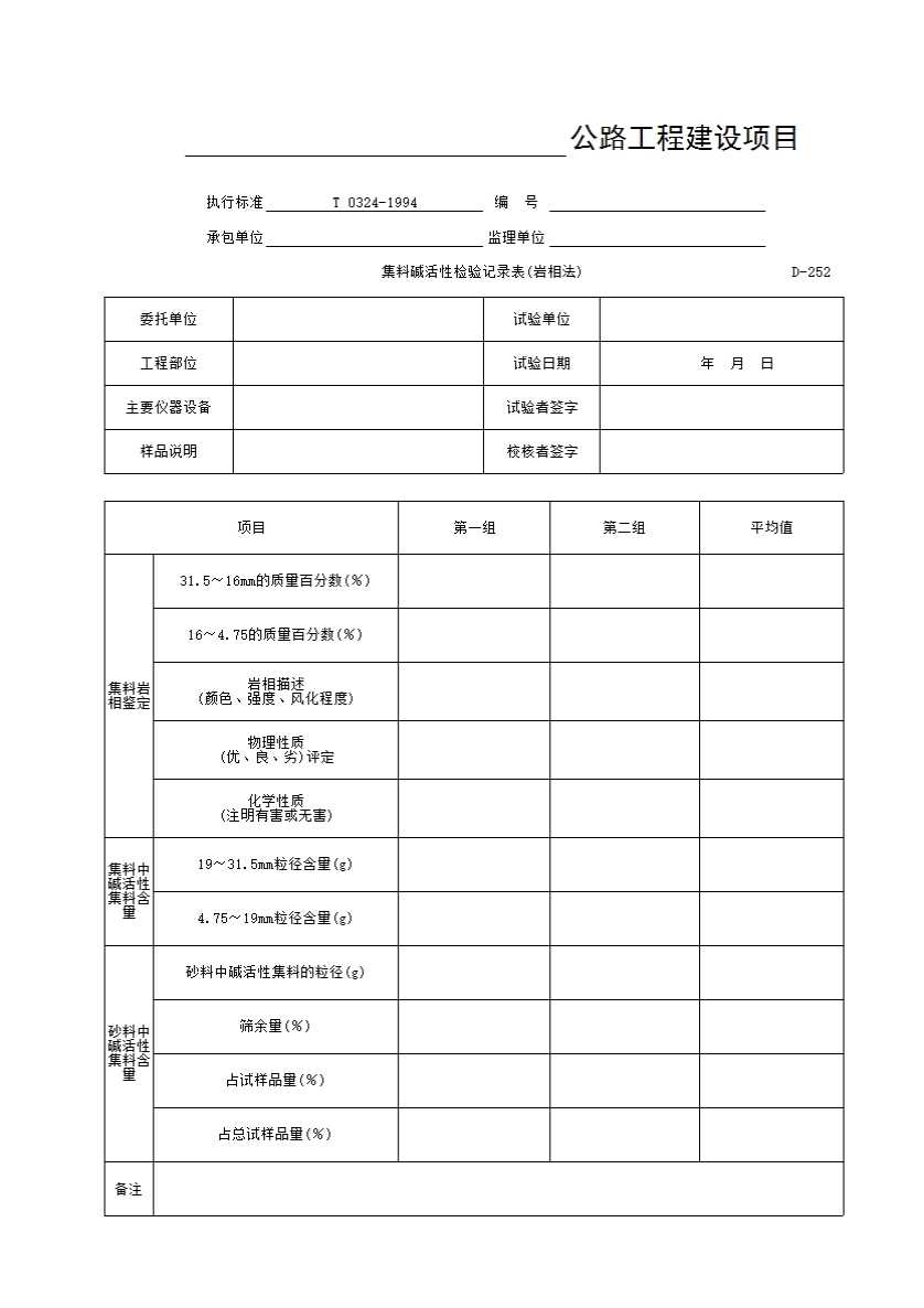 表格名称:D-252 集料碱活性检验记录表(岩相法)