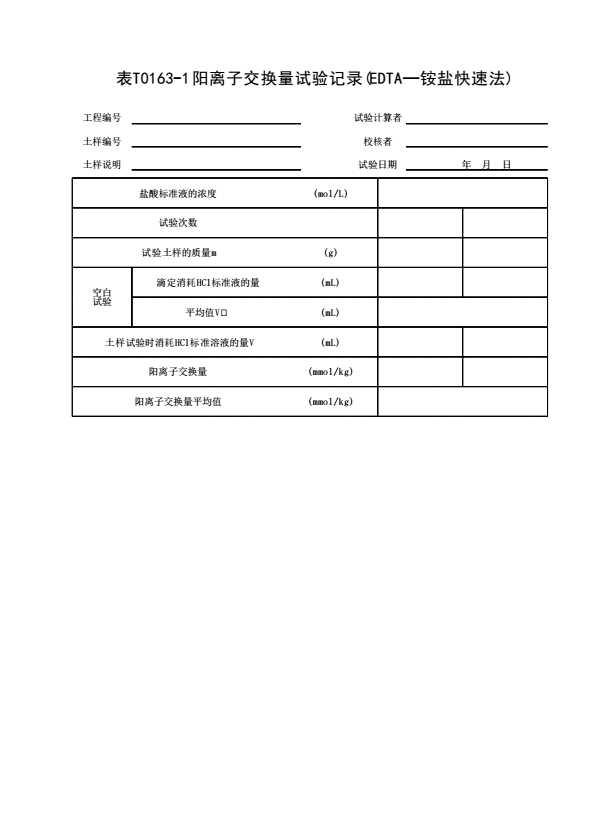 表格名称:表T0163-1 阳离子交换量试验记录(EDTA—铵盐快速法)