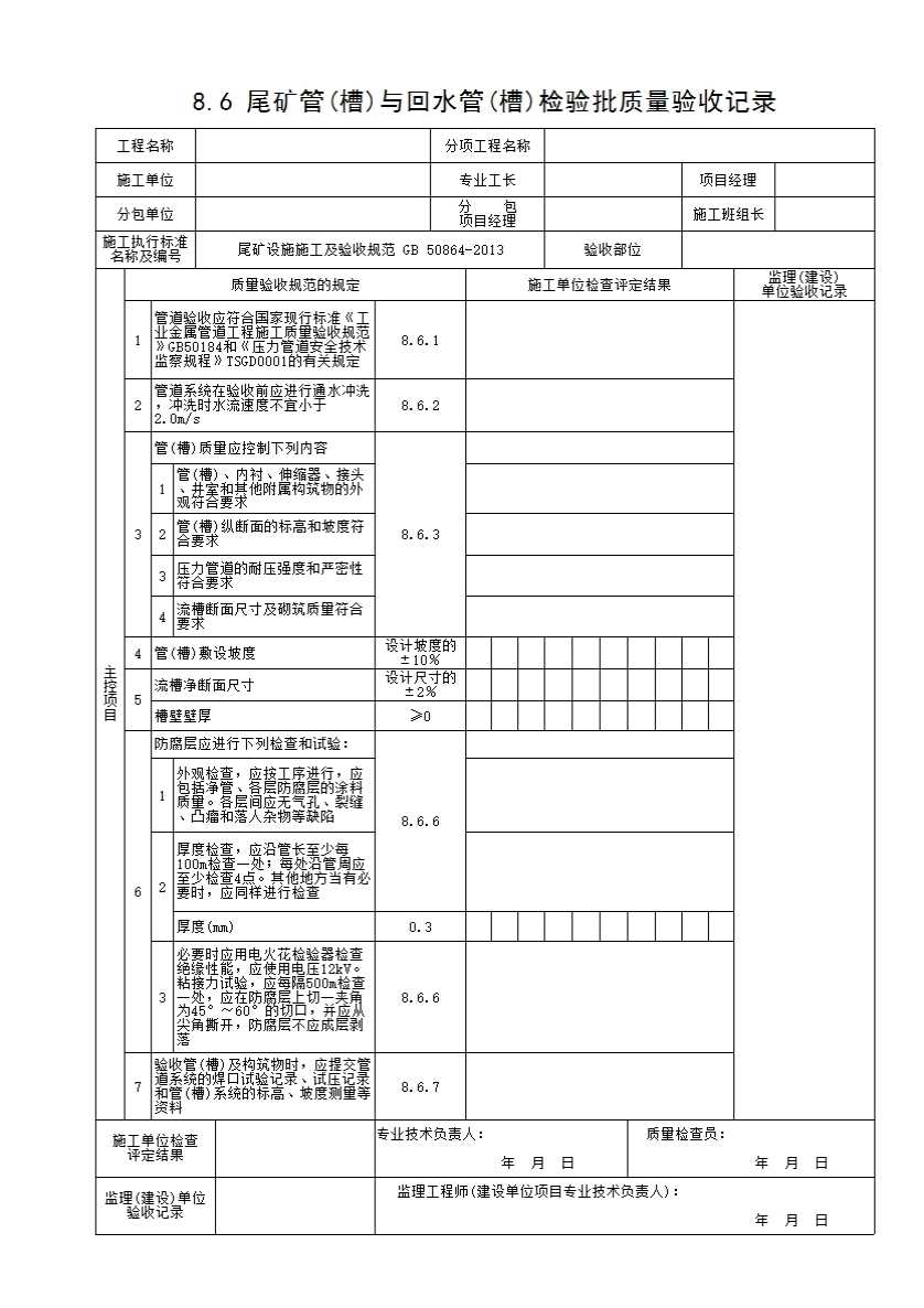 8.6 尾矿管(槽)与回水管(槽)检验批质量验收记录