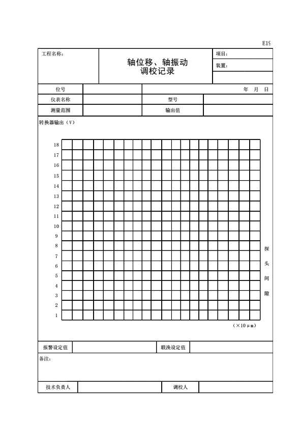 表格名称:E19 轴位移、轴振动调校记录