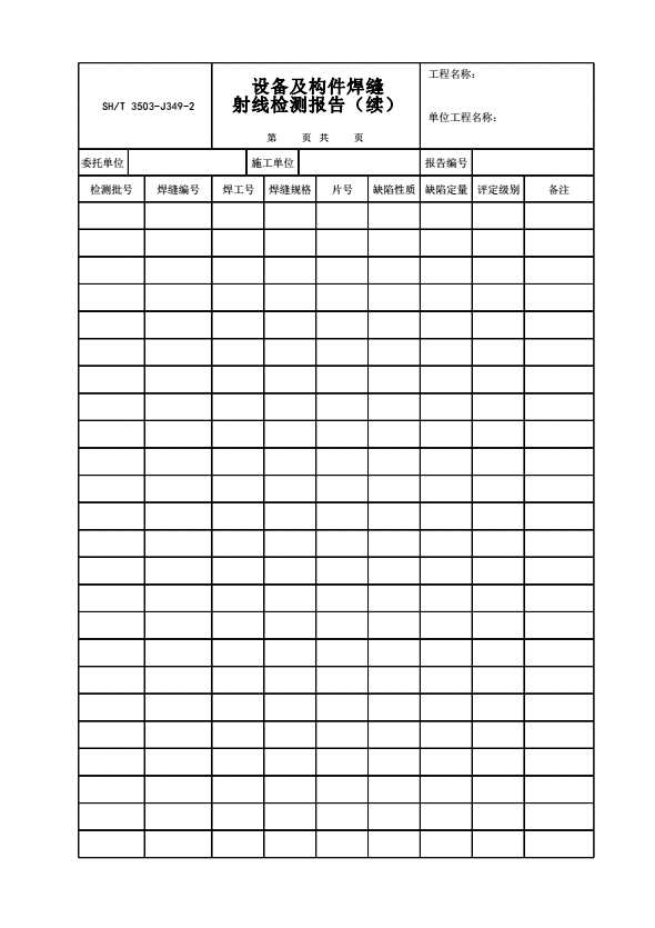 表格名称:SH/T 3503-J349 设备及构件焊缝射线检测报告