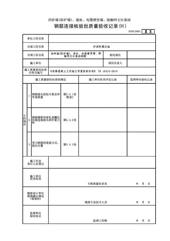 表格名称:03013601 钢筋连接检验批质量验收记录(Ⅲ)