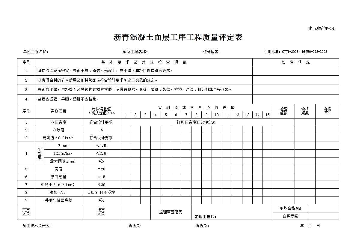 表格名称:14 沥青混凝土面层工序工程质量评定表
