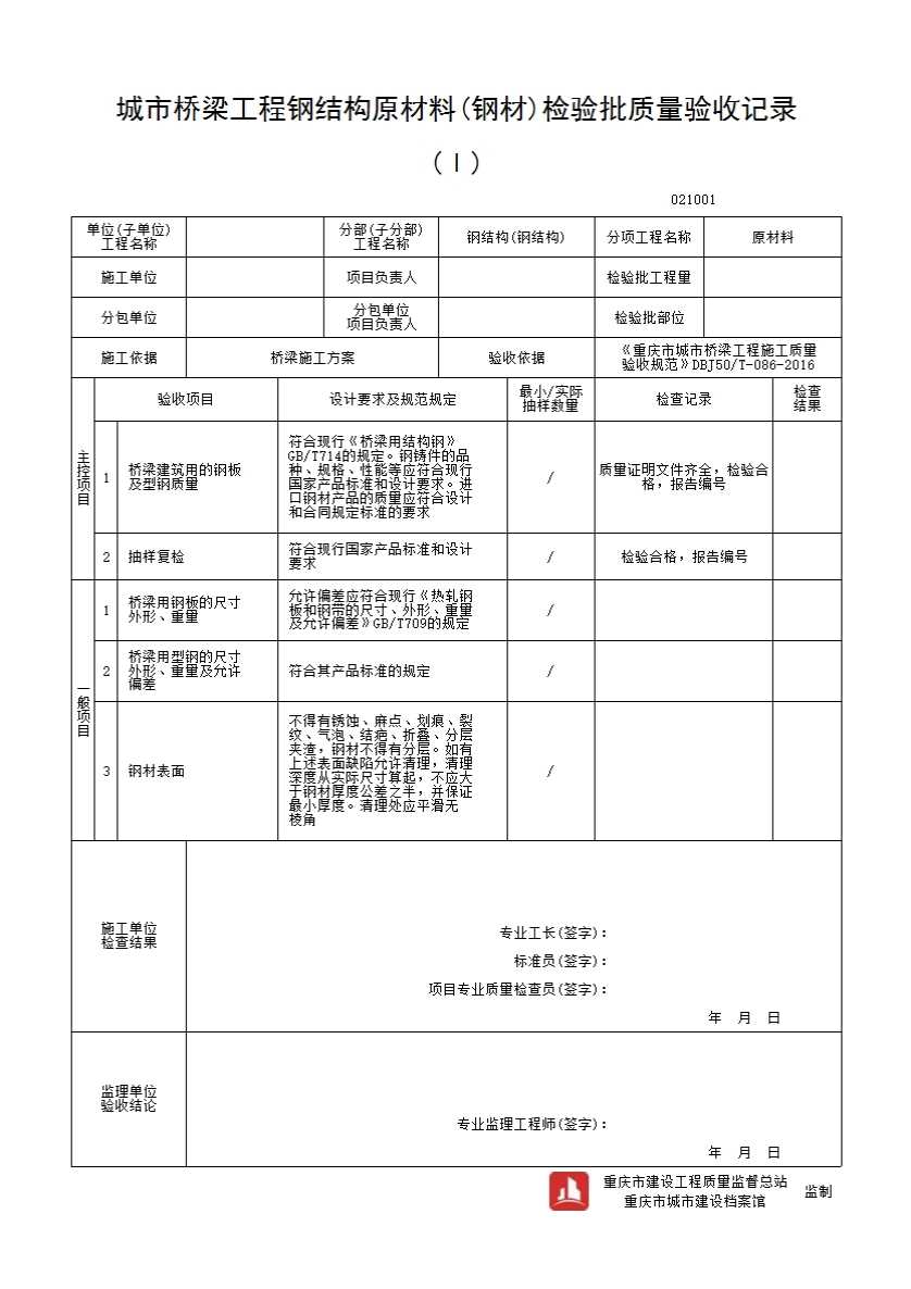 城市桥梁工程钢结构原材料(钢材)检验批质量验收记录