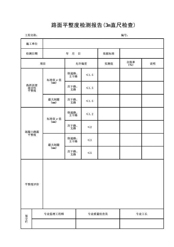 表格名称:路面平整度检测报告(3m直尺检查)
