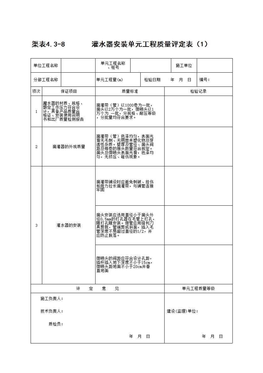 表格名称:4.3-8 灌水器安装单元工程质量评定表(1)