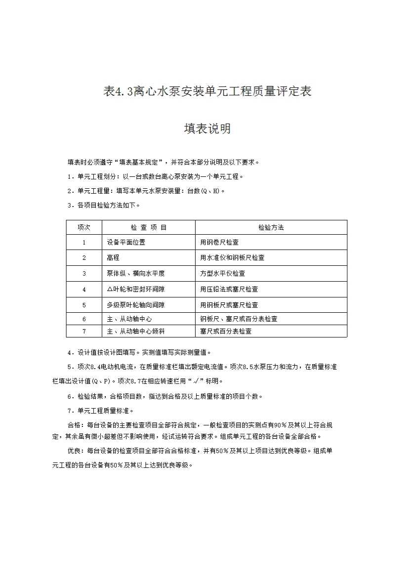 表格名称:表4.3 离心水泵安装单元工程质量评定表