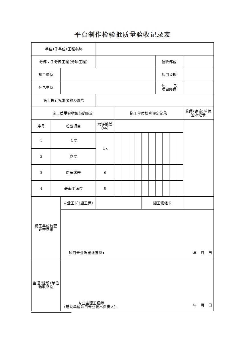 4.2.10 平台制作的检验项目、 要求和方法应符合表4.2.10的规定。