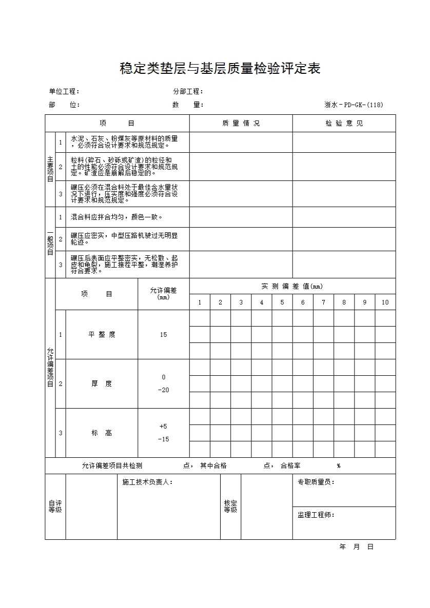 表格名称:118 稳定类垫层与基层质量检验评定表
