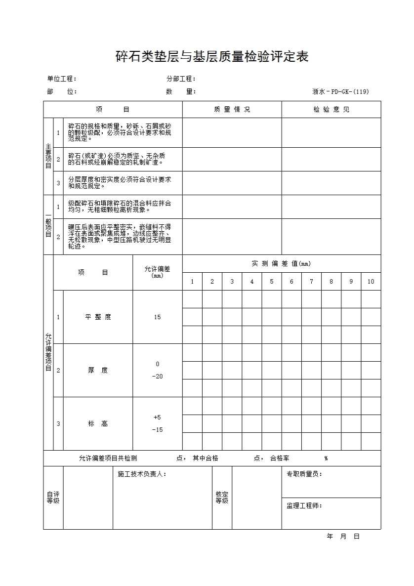 表格名称:119 碎石类垫层与基层质量检验评定表