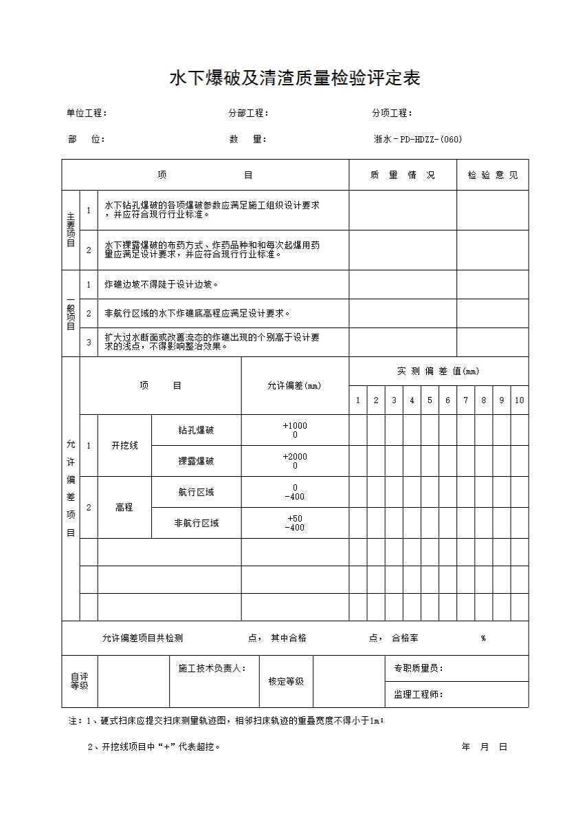 表格名称:060 水下爆破及清渣质量检验评定表