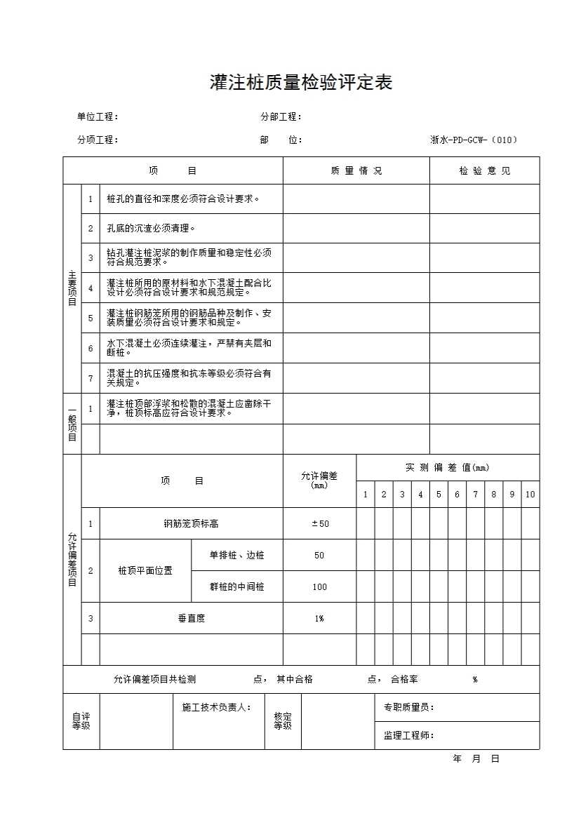 010 灌注桩质量检验评定表