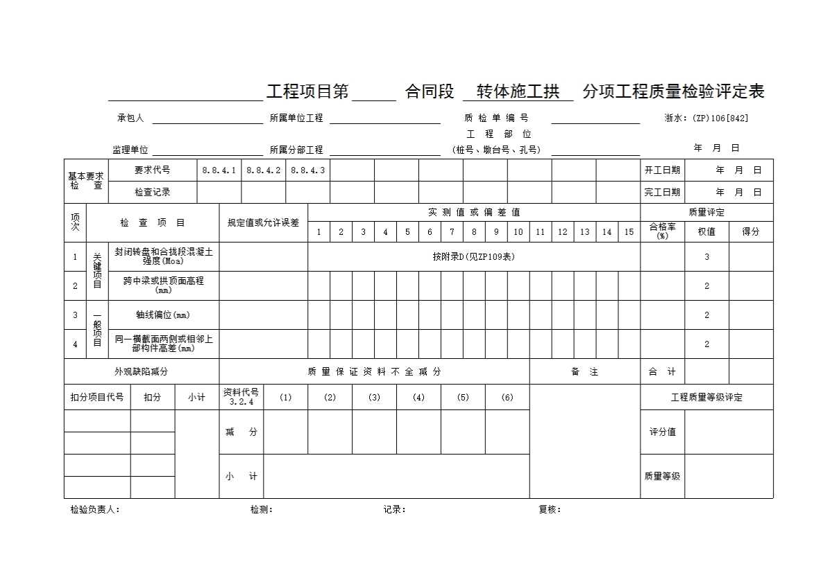 表格名称:042 转体施工拱分项工程质量检验评定表