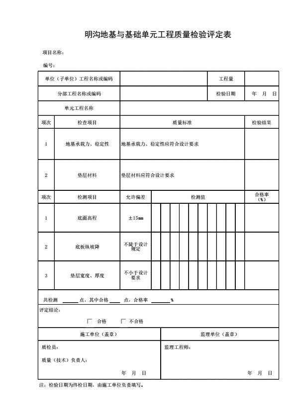 明沟地基与基础单元工程质量检验评定表