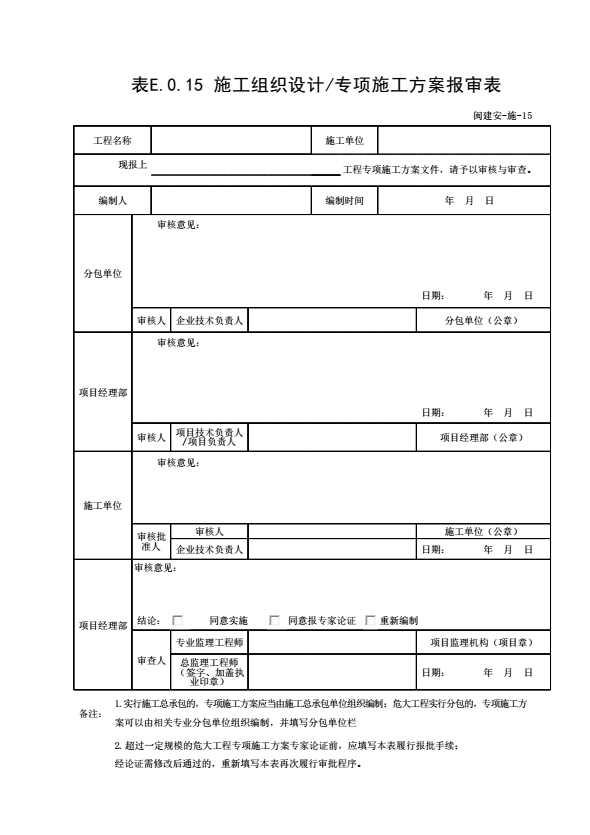 表E.0.15 施工组织设计/专项施工方案报审表