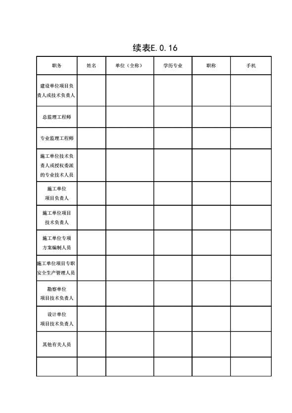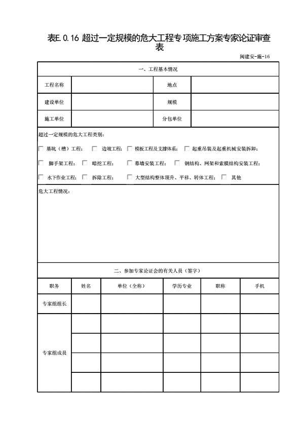 表格名称:表E.0.16 超过一定规模的危大工程专项施工方案专家论证审查表