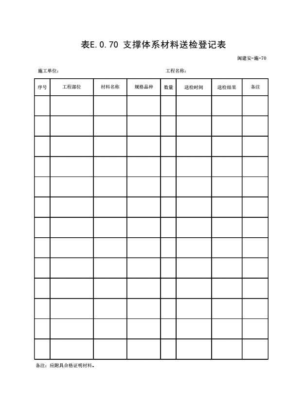 表格名称:表E.0.70 支撑体系材料送检登记表